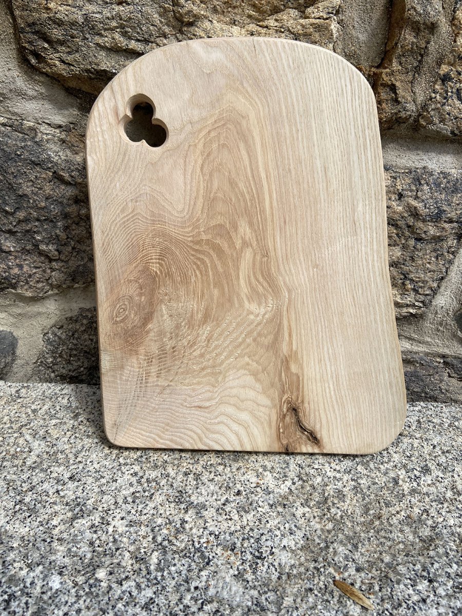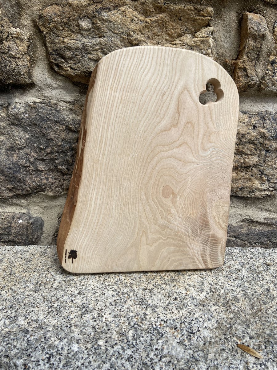 Laissez-vous envoûter par les paysages dessinés par la nature avec la planche rectangulaire en bois « Pradel », une création artisanale au veinage topographique spectaculaire. Fabriquée à 100 % en France dans notre atelier de l'Aubrac, cette pièce en bois massif de frêne, séché plus de 20 ans, offre un format compact et maniable (38 x 26 cm) pour une épaisseur de 3 cm. Avec sa silhouette en dôme, son perçage en trèfle et sa double face contrastée, elle s'impose comme un plateau en bois polyvalent, idéal pour vos découpes quotidiennes ou vos présentations apéritives. Plus d'infos